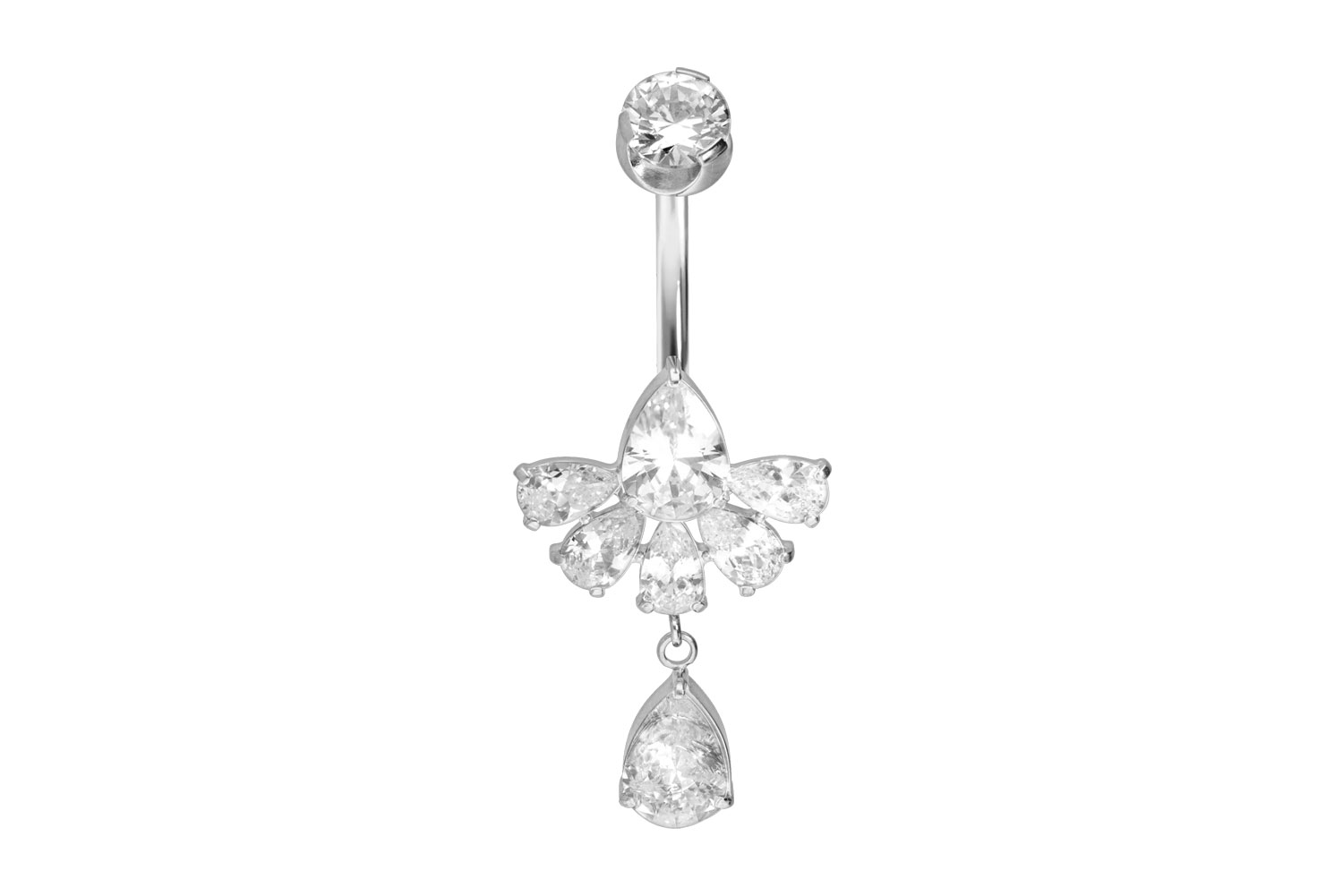 Titan - Bauchnabelpiercing mit Innengewinde Kristallfächer + Kristalltropfen