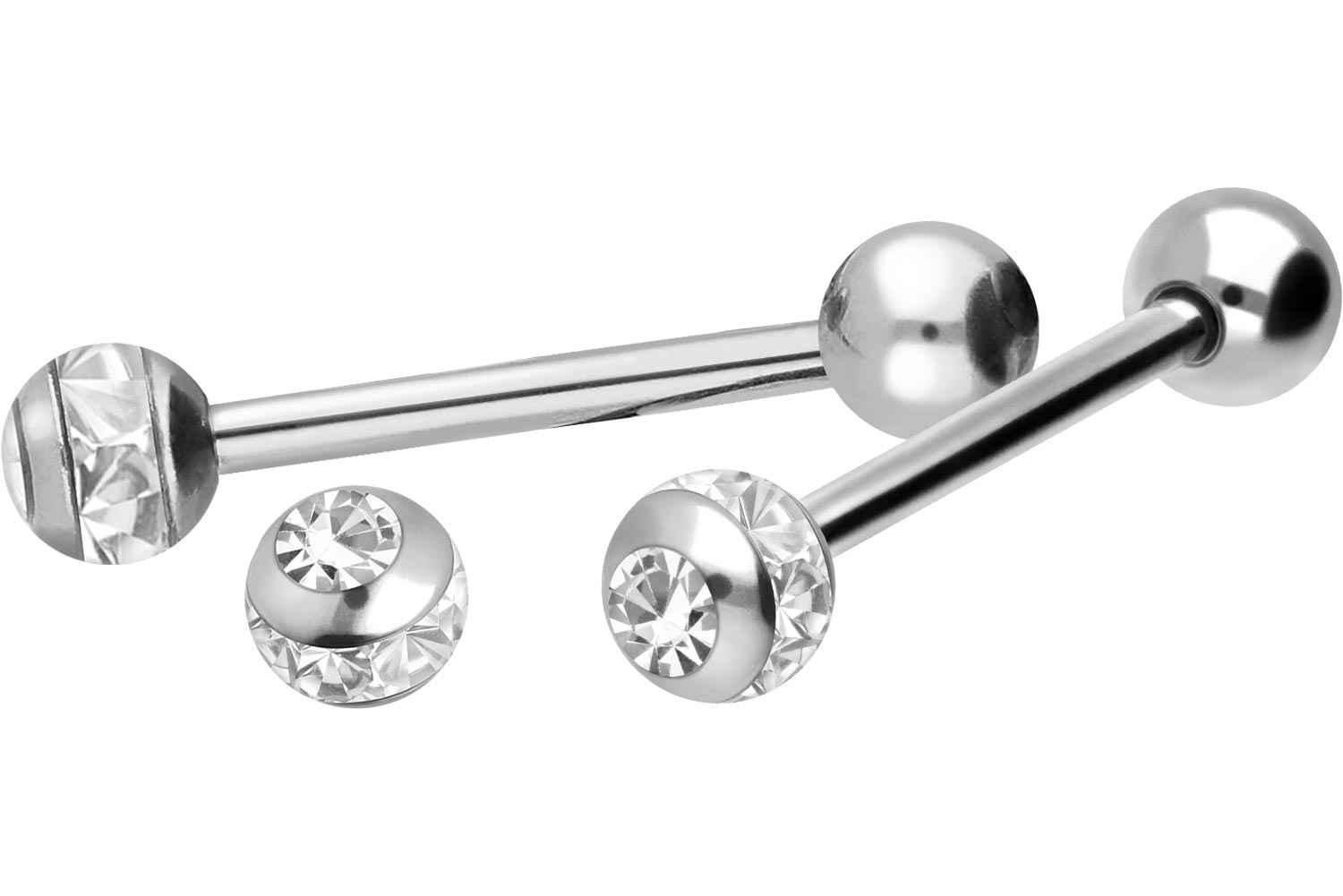 Dieser wunderschöne Barbell besteht aus hochwertigem Titan, das bekanntermaßen über Materialeigenschaften wie gute Hautverträglichkeit, hohe Beständigkeit und Farbechtheit verfügt. An den Enden des Barbells befindet sich jeweils eine angeschraubte Titan-Kugel. Eine dieser beiden Kugeln ist mit einem Ring aus funkelnden Kristallen verziert, die mithilfe einer
