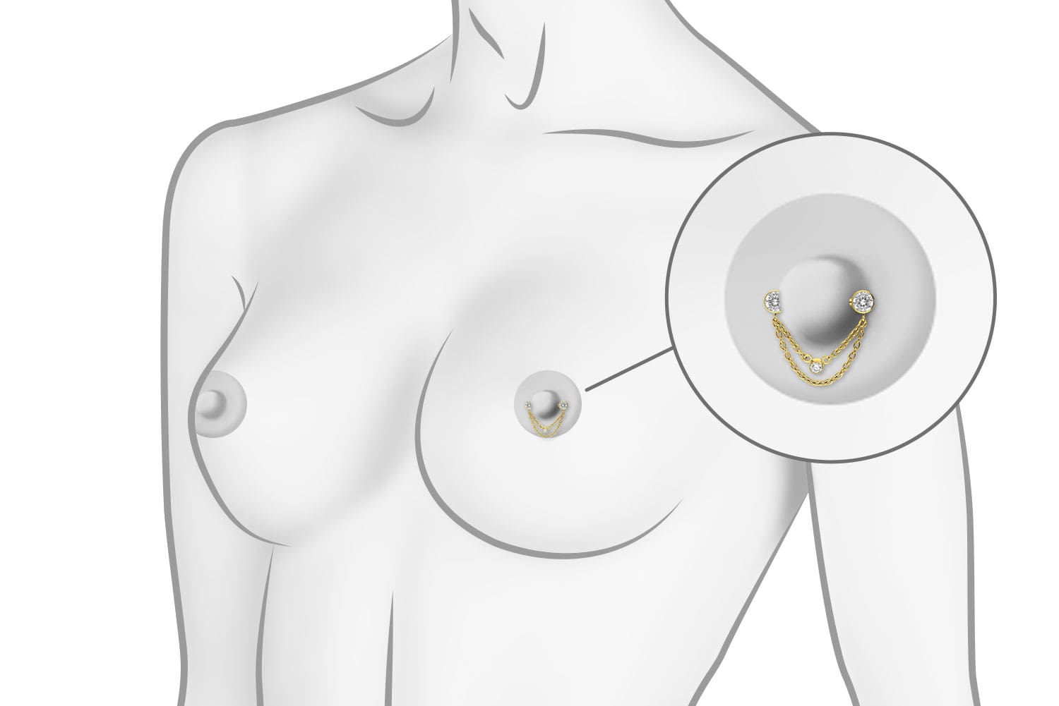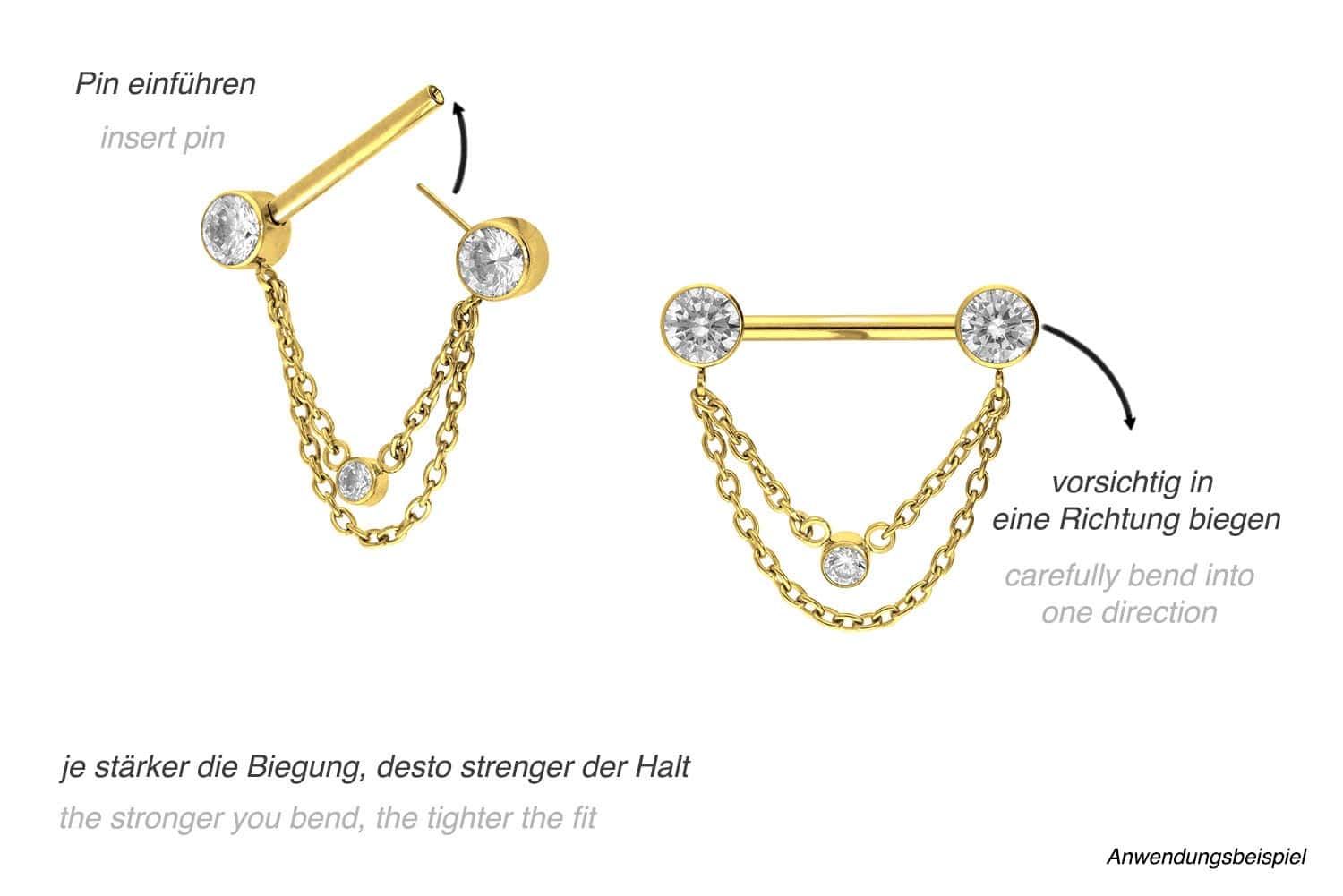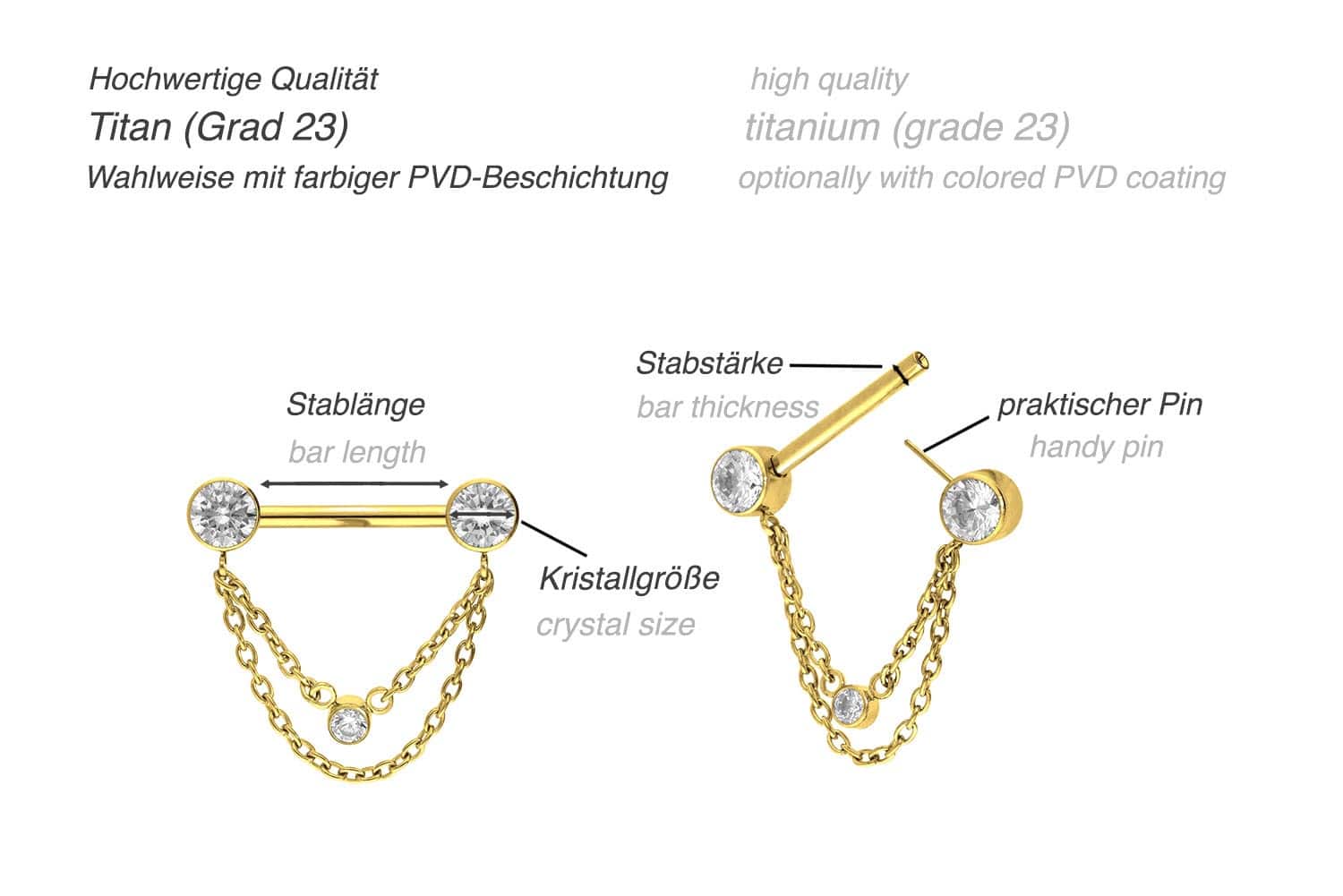 zeitlos schönen Aufsatz mit Push Pin in Form einer Kristalldisc, an der zwei Ketten befestigt sind. Es hat eine Stabstärke von 1,6 mm