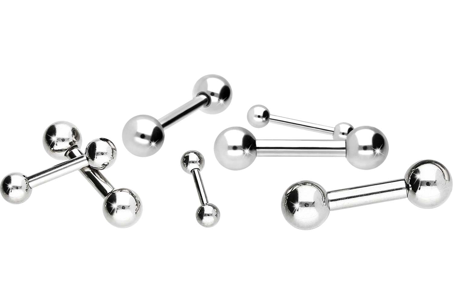 Dieses klassische Barbell ist aus hochwertigem Titan gefertigt, das je nach Farbwunsch mit einer kratzfesten PVD-Beschichtung versehen ist. Besonders hervorzuheben ist die weißgoldfarbene PVD-Beschichtung, die dem bezaubernden Schmuckstück einen hellen silbrigen Glanz verleiht. Zu den Materialeigenschaften von Titan gehören neben der hohen Qualität auch gute Hautverträglichkeit und Beständigkeit. Es gibt viele Kombinationsmöglichkeiten mit unserem Schraubzubehör, da beide Kugeln abgeschraubt werden können. Das Barbell ist in den unten aufgeführten Stabstärken und -längen erhältlich.