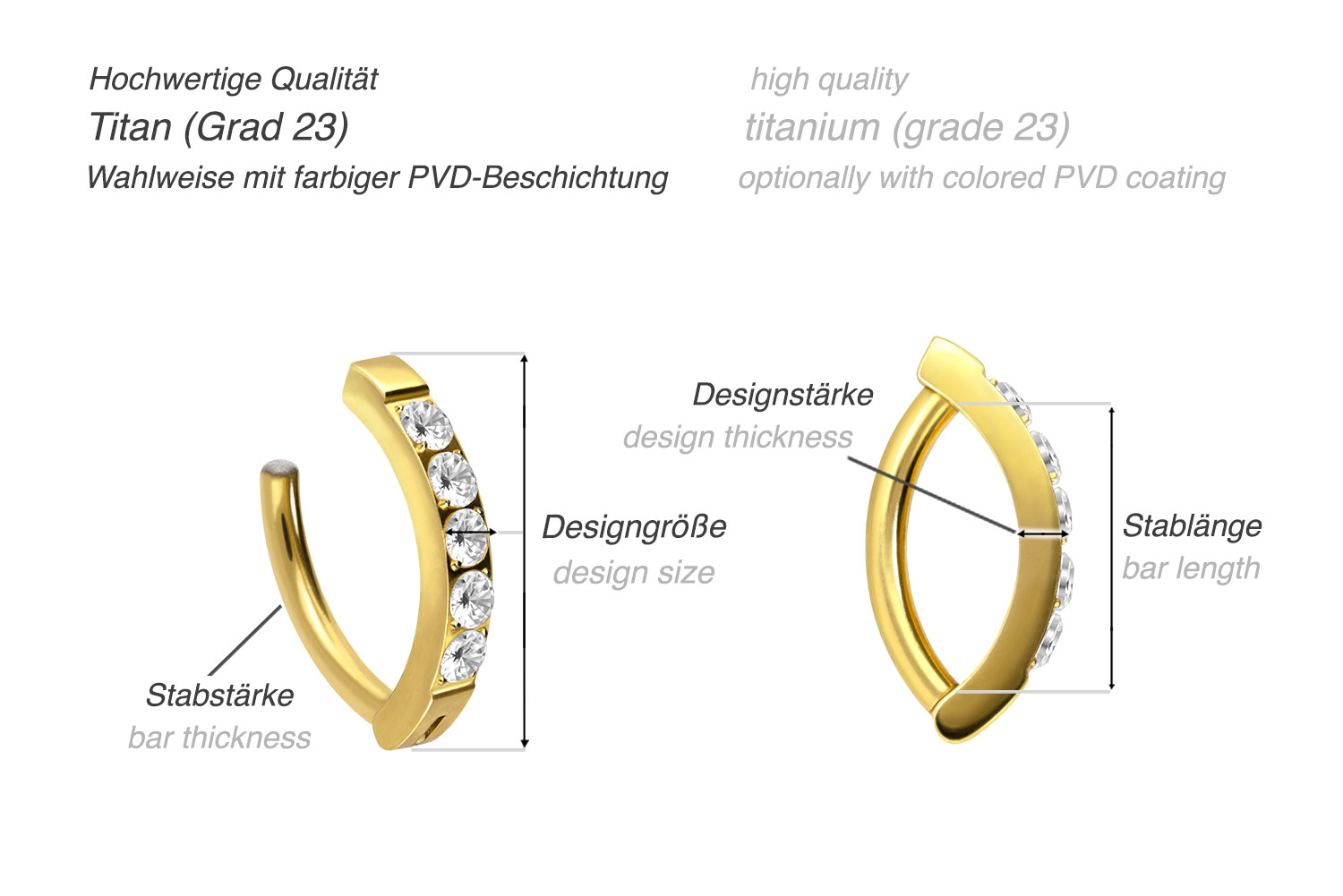Titan Bauchnabelclicker BOGEN + 5 EINGEFASSTE KRISTALLE
