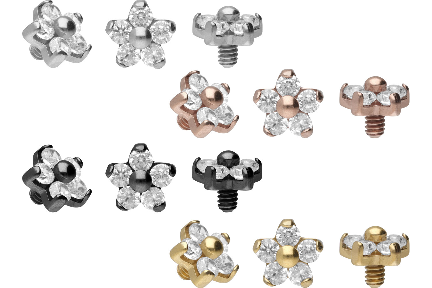 Titan - Dermal Anchor Aufsatz Blume mit 5 Kristallen