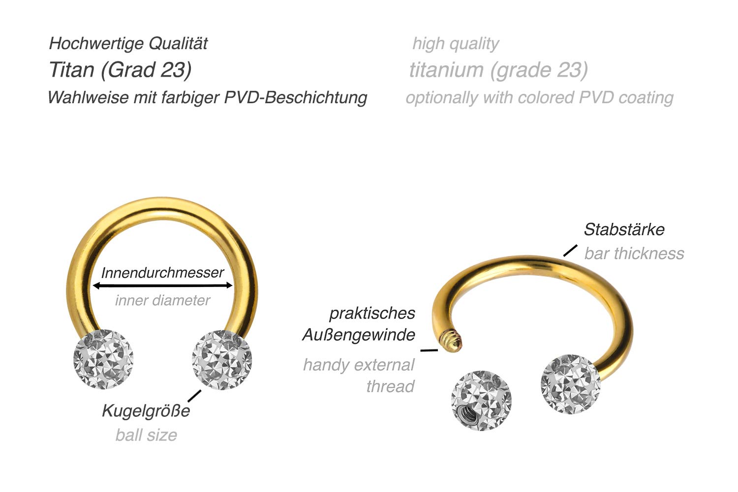 Wahl, die durch die Hochglanzpolitur zusätzlich veredelt wird. An den beiden Enden des Rings befindet sich jeweils eine abschraubbare Kugel.