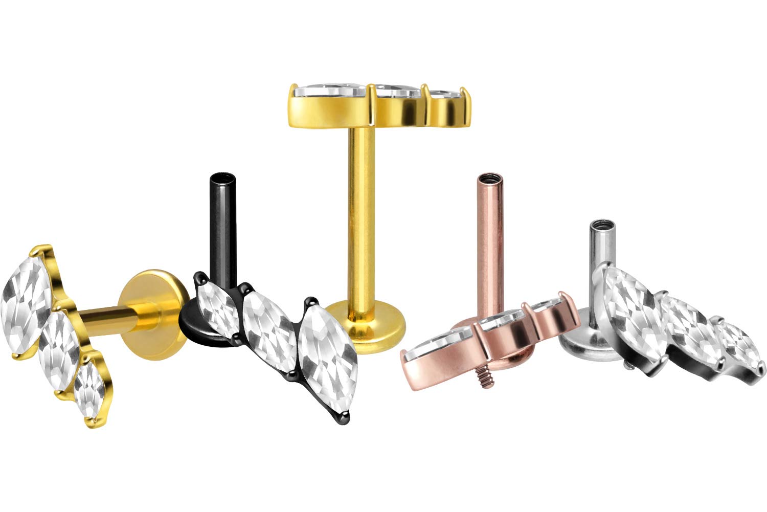Titan Labret mit Innengewinde 3 EINGEFASSTE KRISTALLTROPFEN