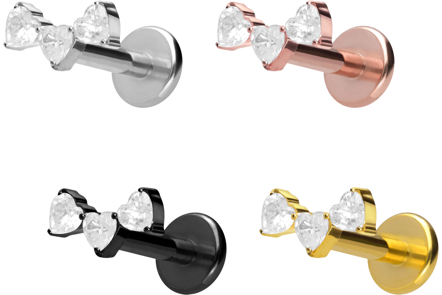 Titan - Labret mit Innengewinde 3 Kristallherzen