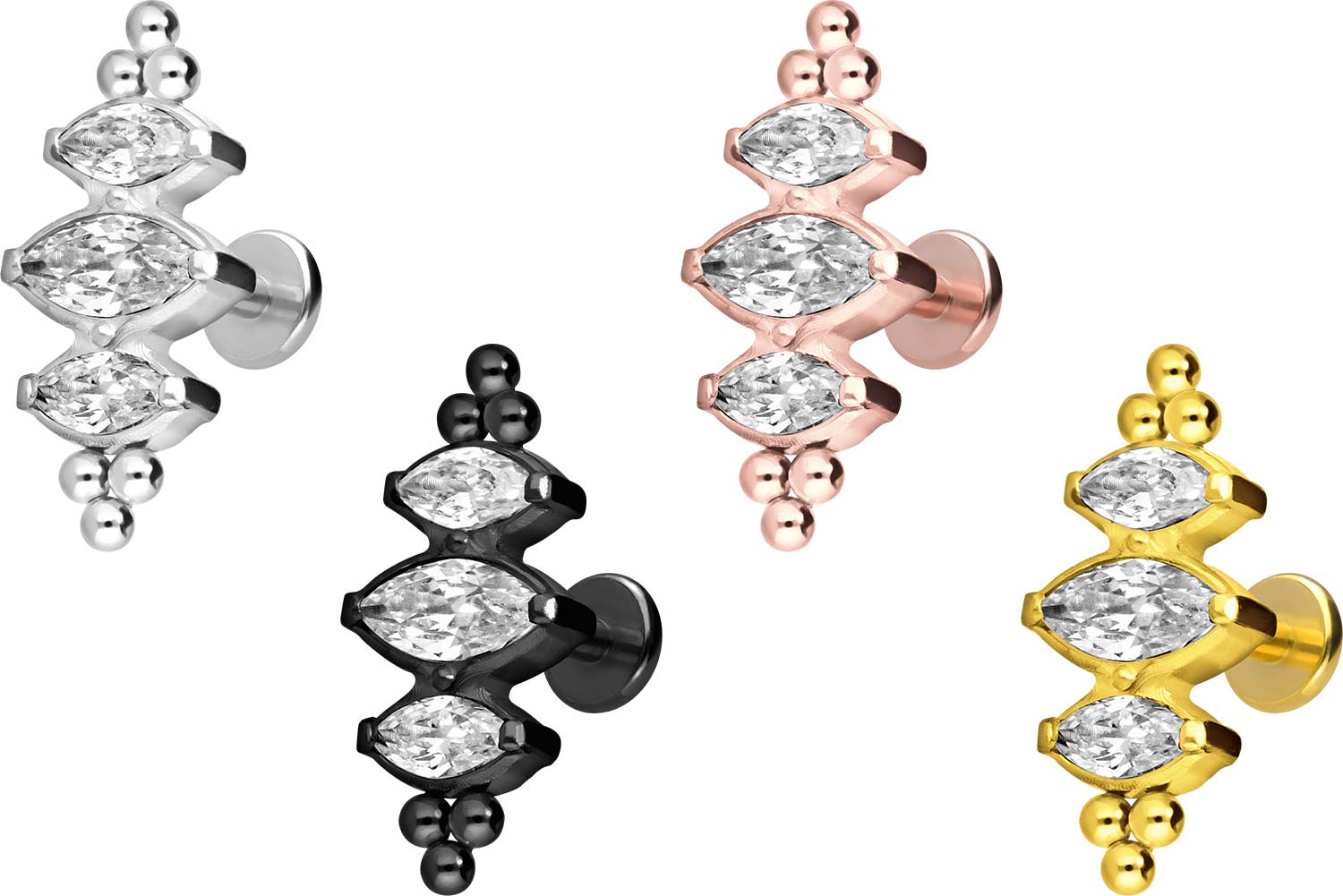 Titan Labret mit Innengewinde 3 KRISTALLTROPFEN + KUGELN