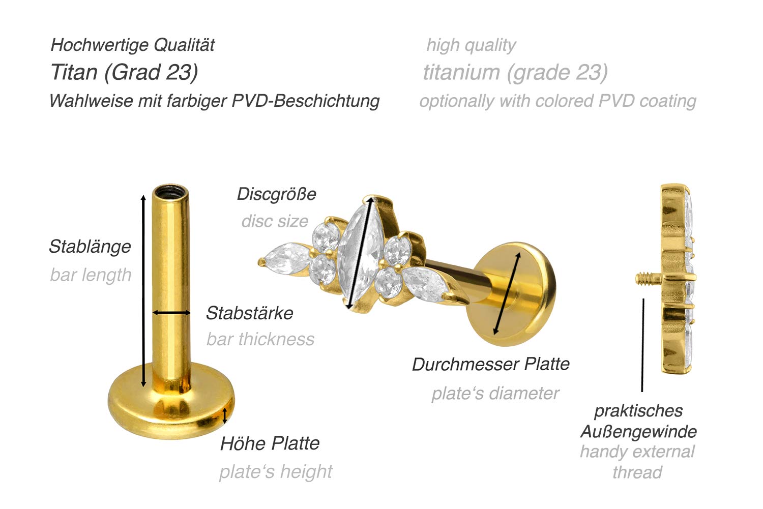 Dieses einzigartige Labret ist aus hochwertigem Titan gefertigt, das