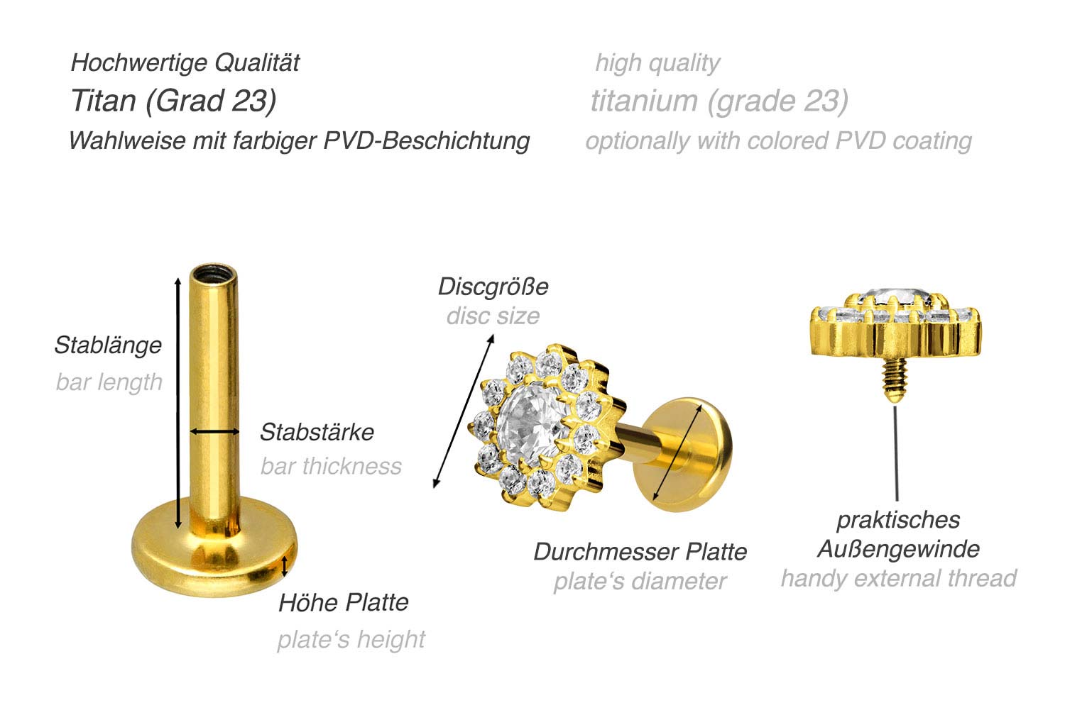 Titan Labret mit Innengewinde KRISTALLBLUME