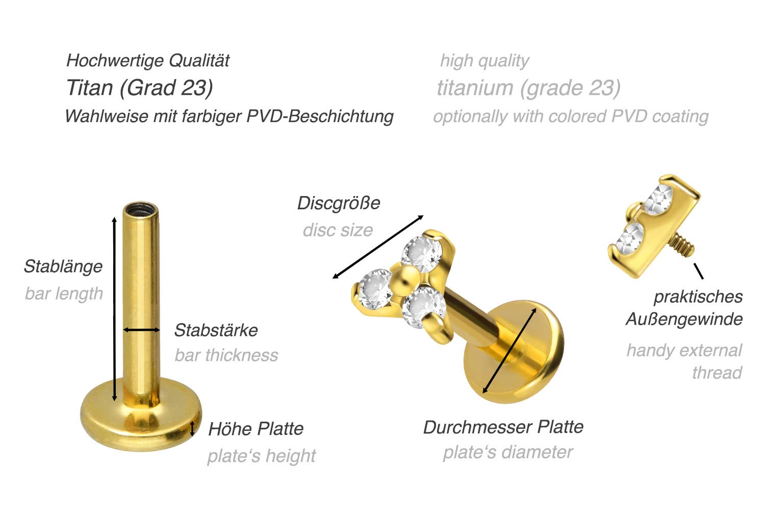 Titan Labret mit Innengewinde KRISTALLBLUME