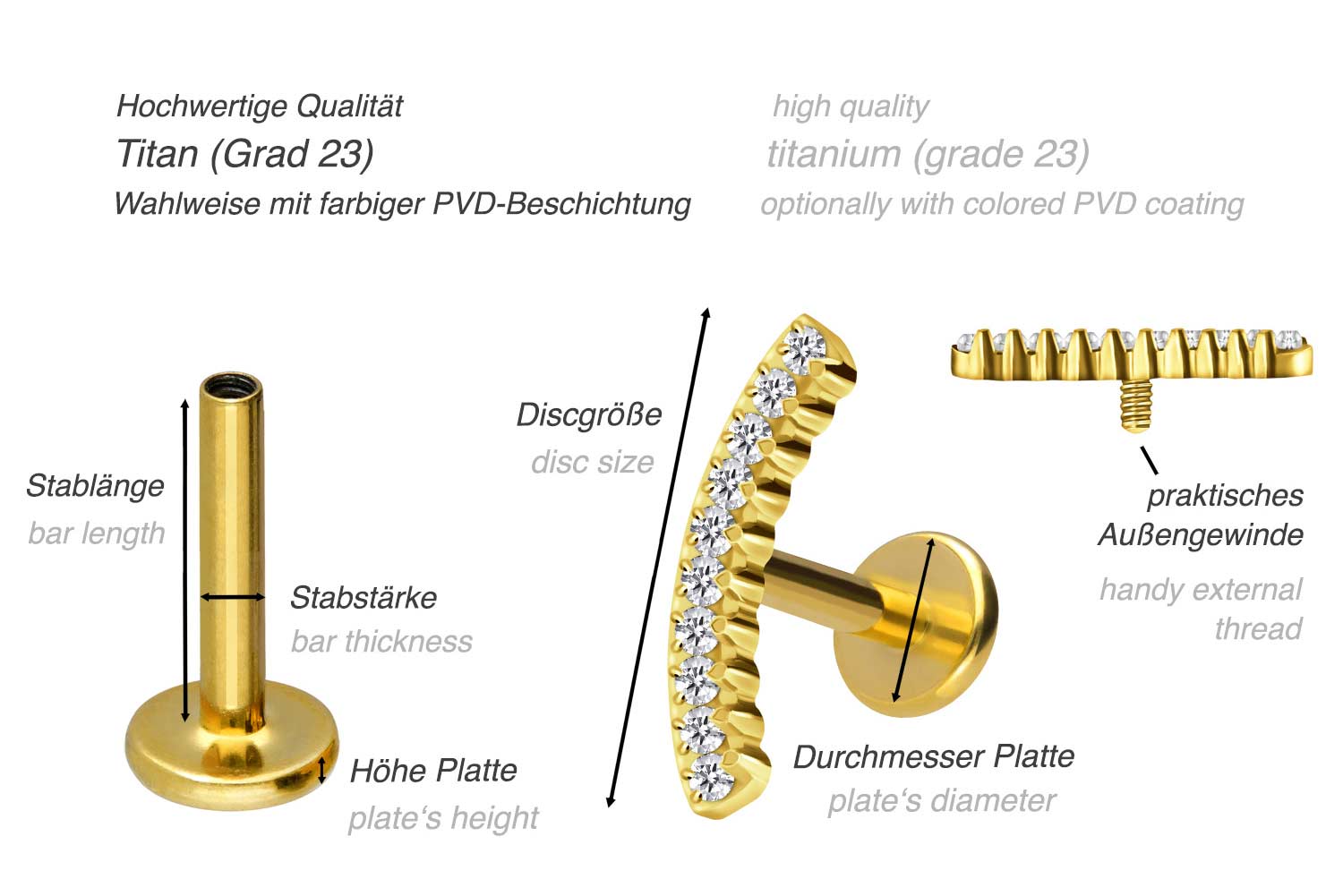 Dieses einzigartige Labret ist aus hochwertigem Titan gefertigt, das