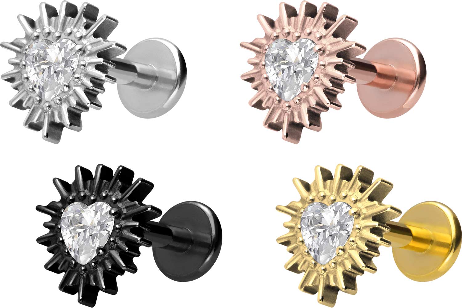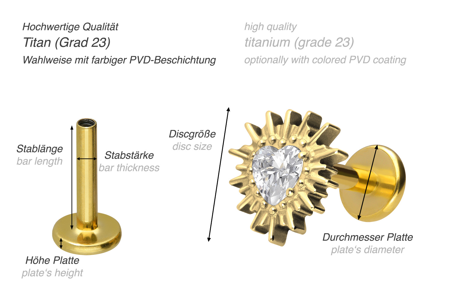 Titan - Labret mit Innengewinde Kristallherz + Sonnenstrahlen