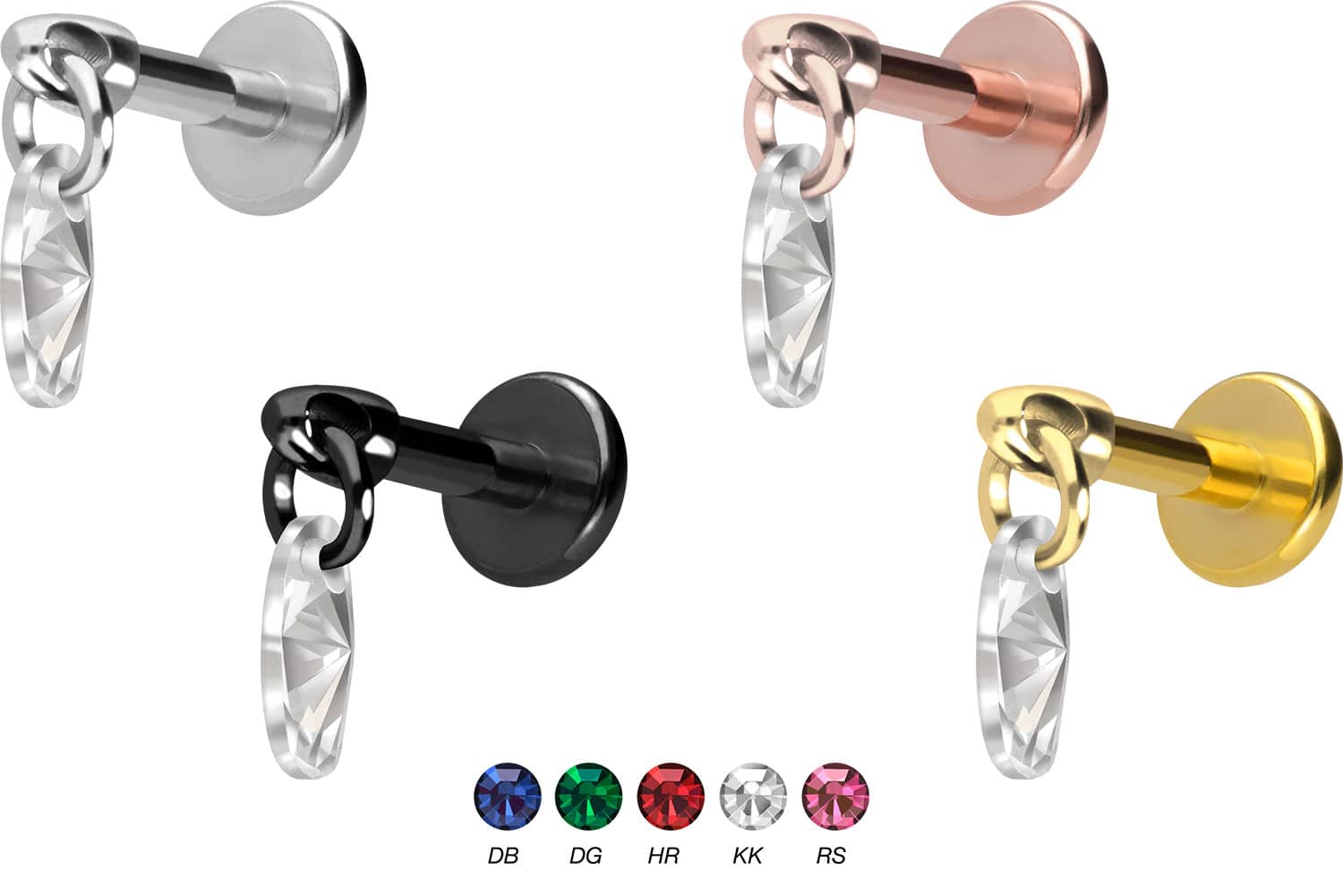 Titan Labret mit Innengewinde KRISTALLOVAL
