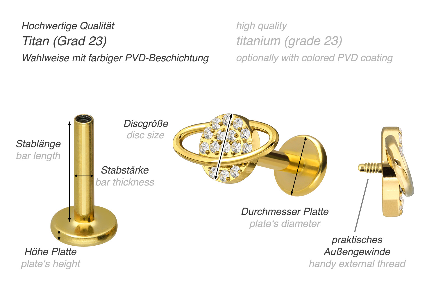 Dieses einzigartige Labret ist aus hochwertigem Titan gefertigt, das