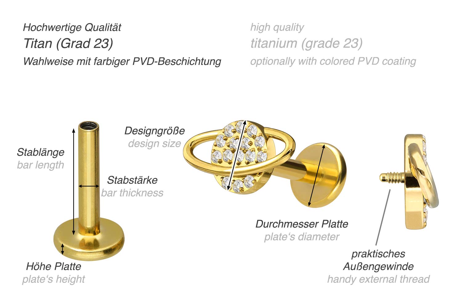 zeitlos schönen Schraubaufsatz mit Außengewinde in Form eines Planets, hat eine Stabstärke von entweder 1,2 oder 1,6 mm