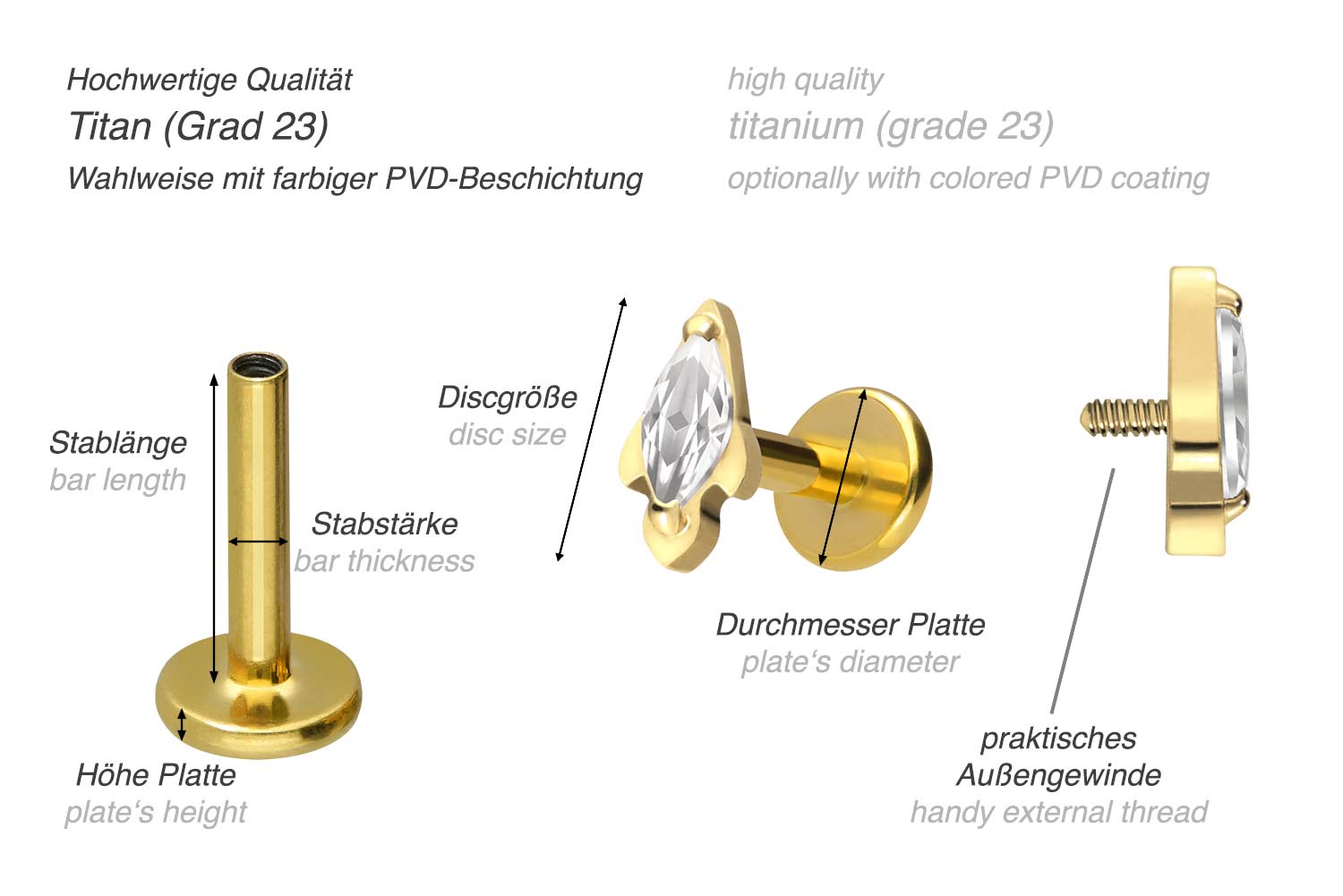 Dieses einzigartige Labret ist aus hochwertigem Titan gefertigt, das