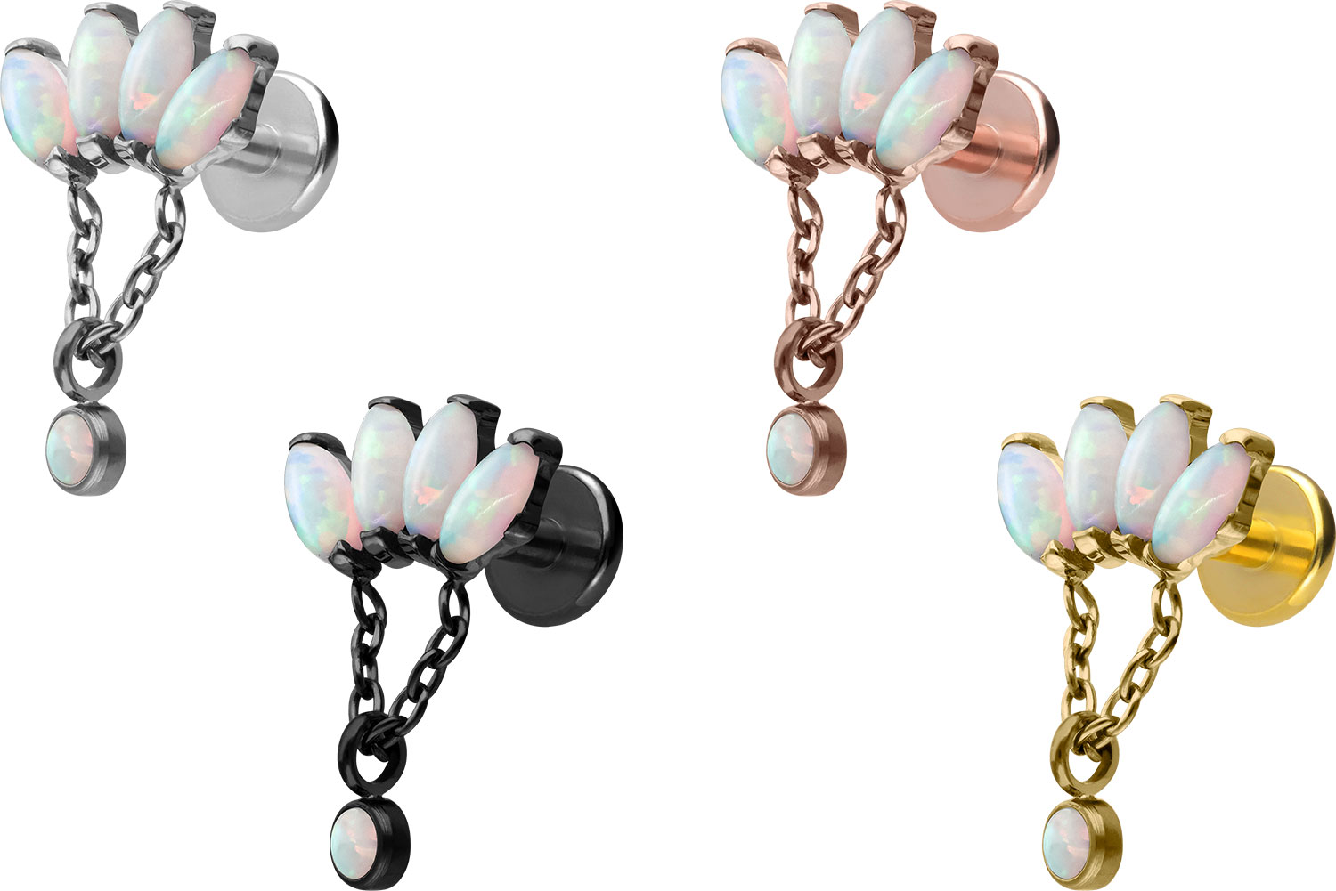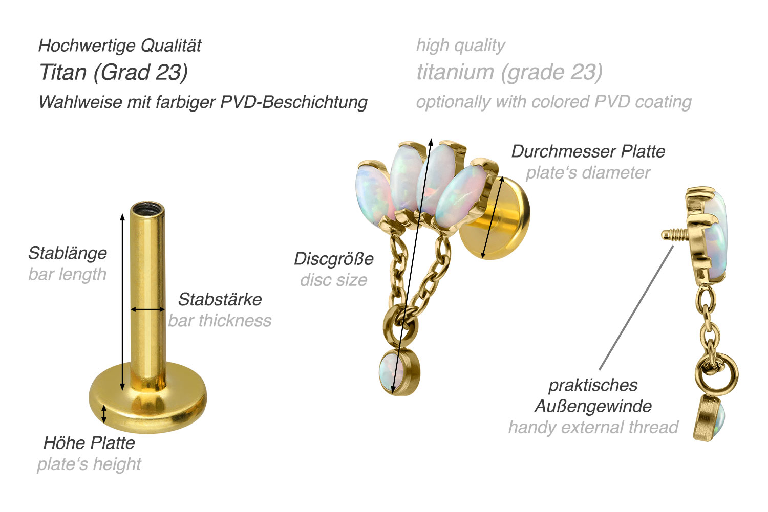 Titan Labret mit Innengewinde LOTUSBLÜTE + SYNTHETISCHE OPALE