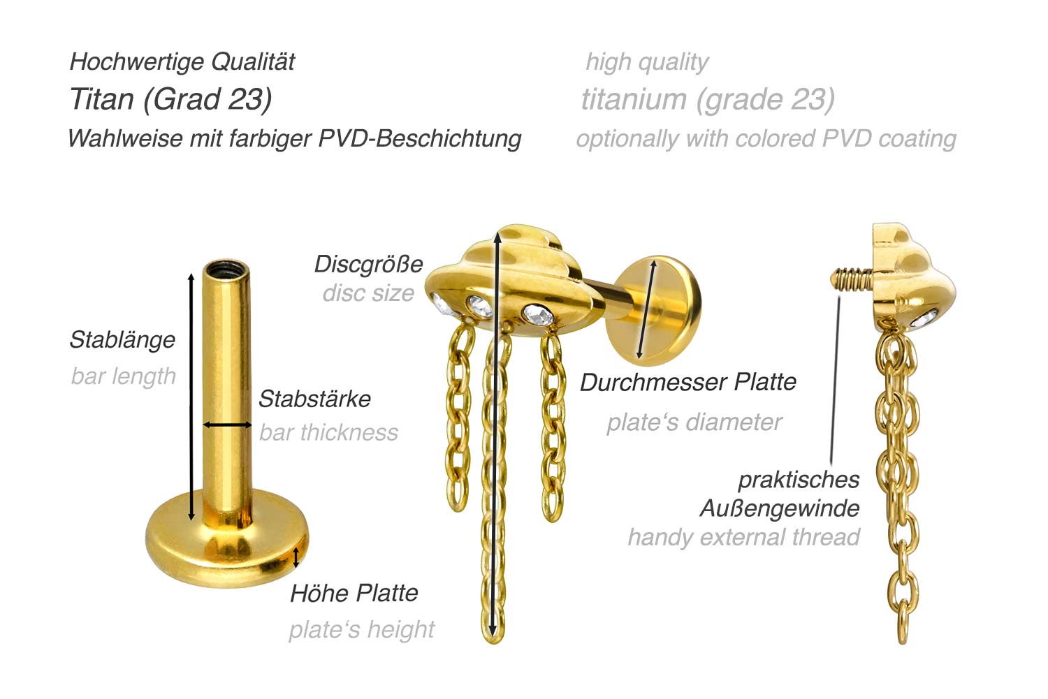 Titan - Labret mit Innengewinde Ufo + Ketten + Kristalle