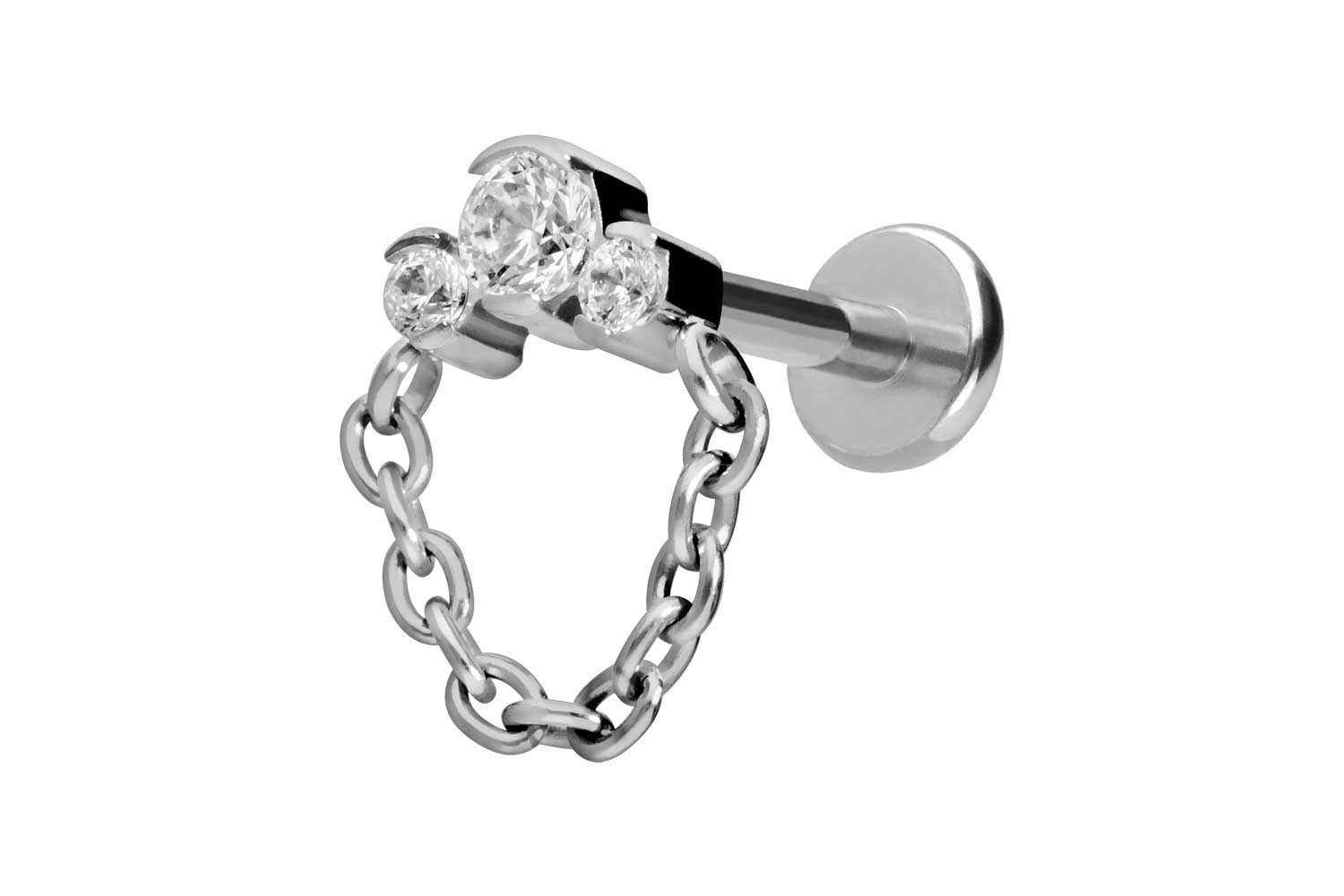 Titan Labret mit Push Fit 3 EINGEFASSTE KRISTALLE + KETTE