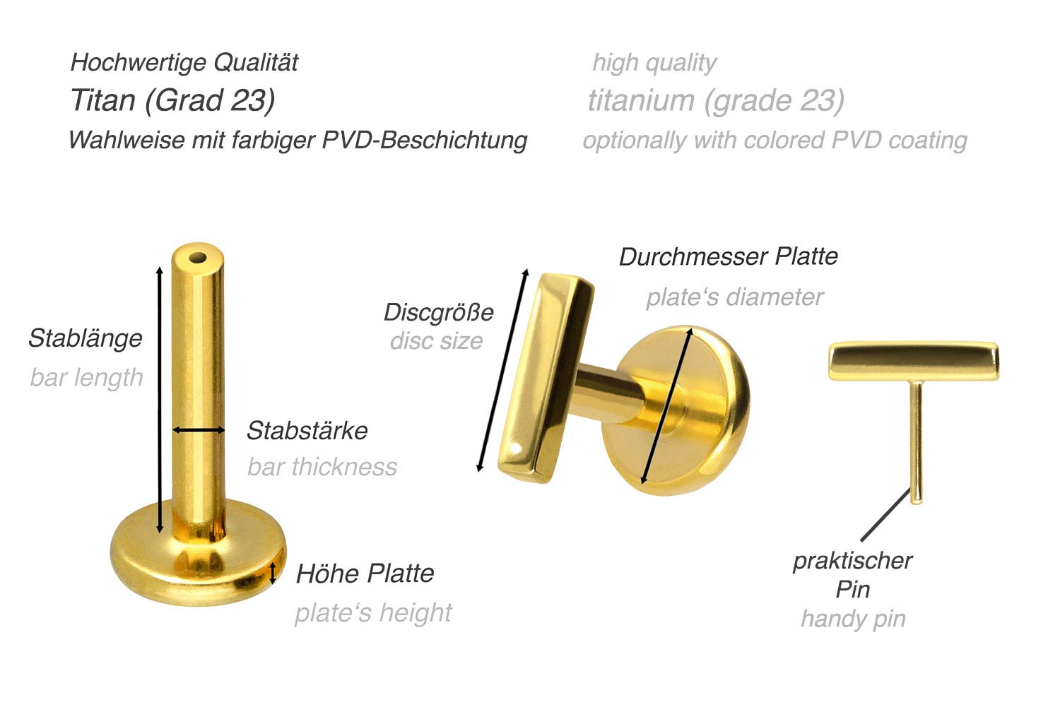 PVD-Beschichtung gewährleistet wird. Das Labret verfügt über einen