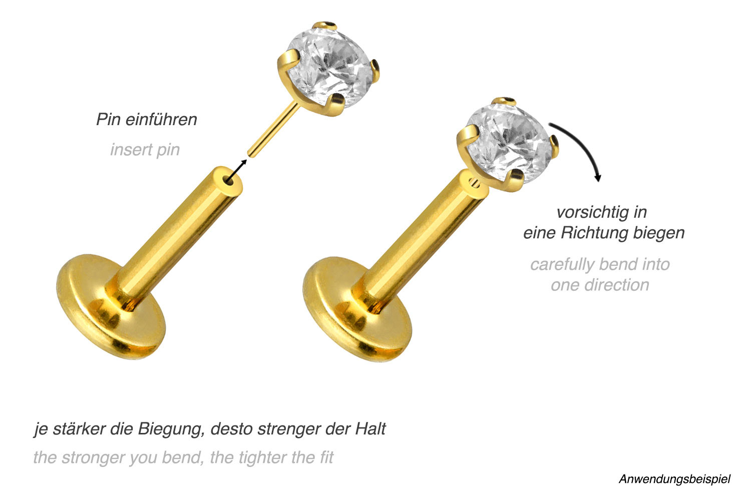 Durch die verwendete Push Fit Technologie kann das Labret nach Belieben mit all unseren Aufsätzen mit Push Pin kombiniert werden.
