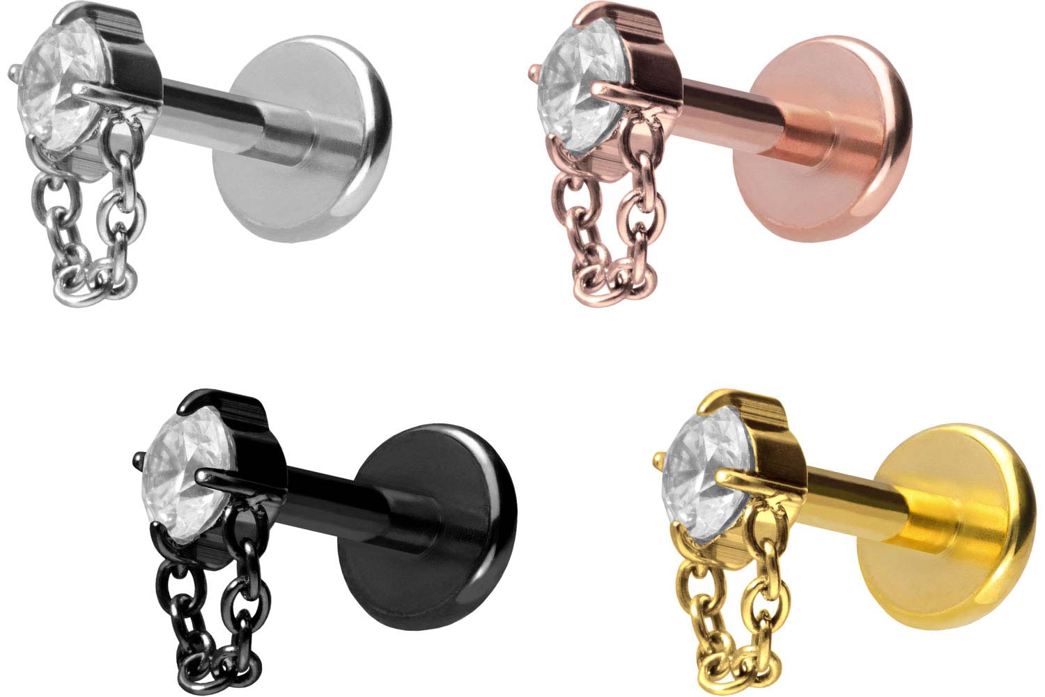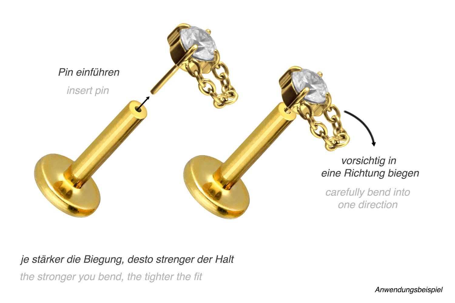Titan Labret mit Push Fit KRISTALL + KETTE