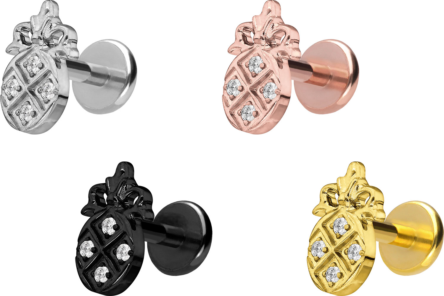 zeitlos schönen Aufsatz mit Push Pin in Form einer funkelnden Ananas, hat eine Stabstärke von entweder 1 oder 1,2 mm