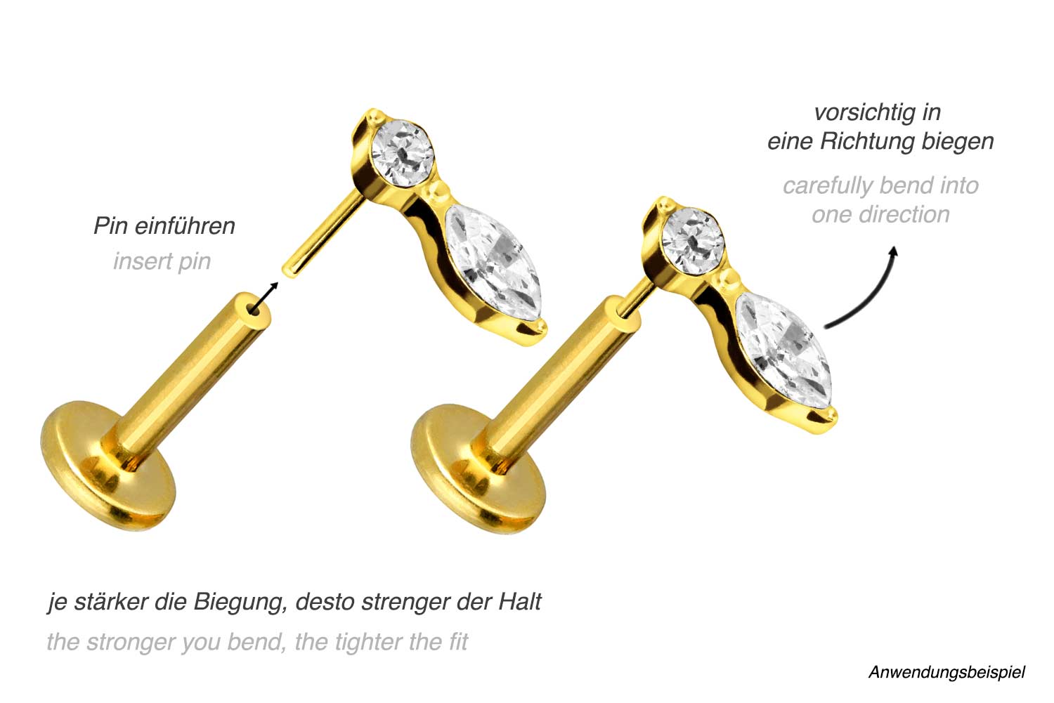 Durch die verwendete Push Fit Technologie kann das Labret nach Belieben mit all unseren Aufsätzen mit Push Pin kombiniert werden.