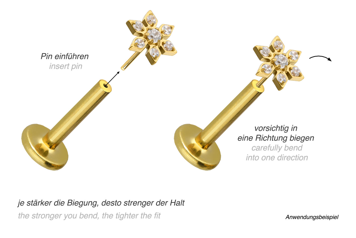 Durch die verwendete Push Fit Technologie kann das Labret nach Belieben mit all unseren Aufsätzen mit Push Pin kombiniert werden.