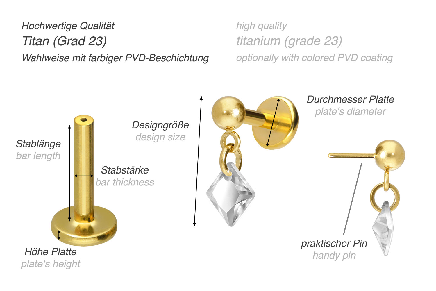 Dieses einzigartige Labret ist aus hochwertigem Titan gefertigt, das