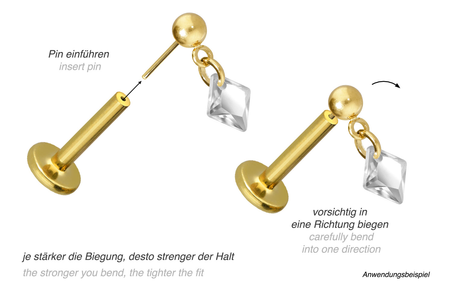 Durch die verwendete Push Fit Technologie kann das Labret nach Belieben mit all unseren Aufsätzen mit Push Pin kombiniert werden.