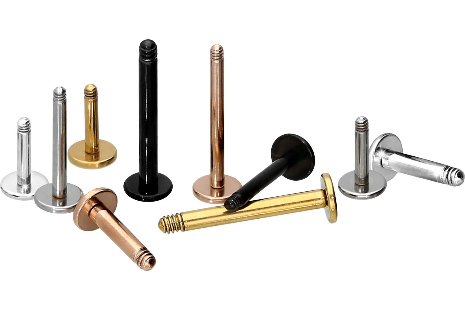 Dieses klassische Labret ist aus hochwertigem Titan gefertigt, das je nach gewünschter Farbe mit einer kratzfesten PVD-Beschichtung versehen ist. Besonders hervorzuheben ist dabei die weißgoldfarbene PVD-Beschichtung, die diesem bezaubernden Schmuckstück einen hellen silbrigen Glanz verleiht. Zu den Materialeigenschaften von Titan gehören neben der hohen Qualität auch gute Hautverträglichkeit und hohe Beständigkeit. Das Labret wird ohne Kugel geliefert, hat eine Stabstärke von entweder 1 / 1,2 oder 1,6 mm und ist mit den unten aufgeführten Stablängen erhältlich. Darüber hinaus kann es mit einer Vielzahl an Artikeln unseres Schraubzubehörs kombiniert werden. Dies gilt auch für das Labret mit 1 mm Stabstärke, da es über ein 1,2 mm starkes Gewinde verfügt.