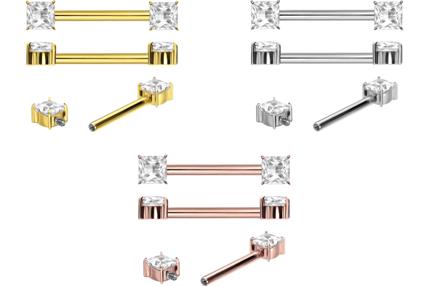 Titan Nippelpiercing mit Innengewinde EINGEFASSTES KRISTALLQUADRAT