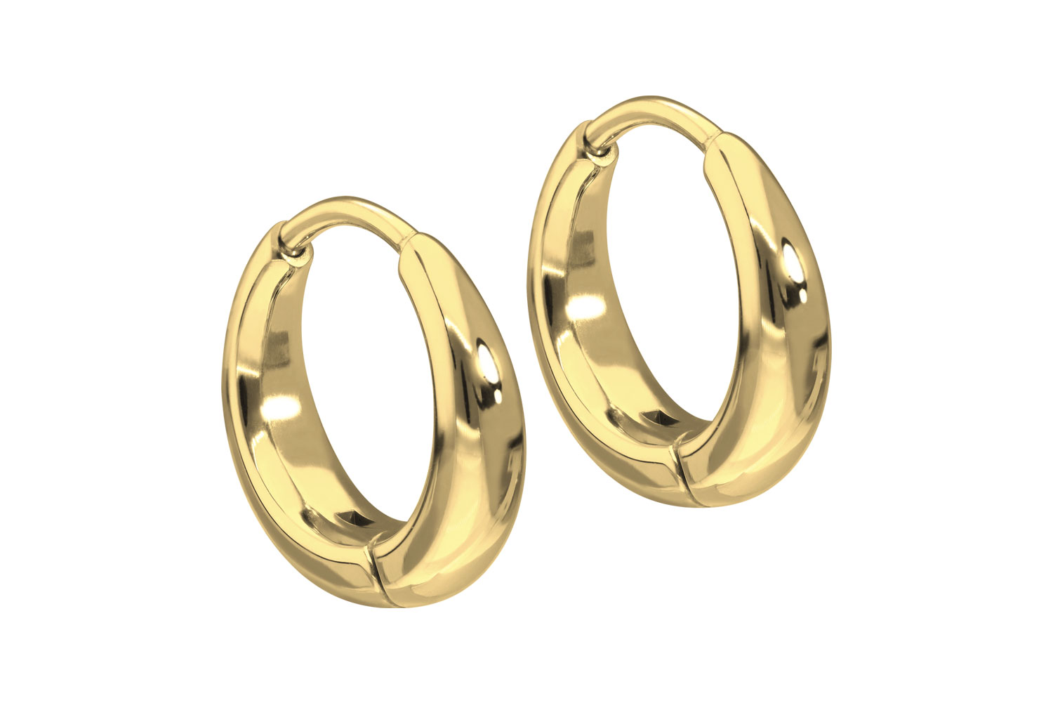 PVD-Beschichtung überzogen. Dank des schlichten sowie zeitlos schönen Designs eignen sich die Creolen wunderbar als alltägliche Begleiter. Der in den Stichkanal einzuführende Stab hat eine Stärke von 1 mm, wohingegen die Breite des sichtbaren Designs 4 mm beträgt. Die Creolen werden wie abgebildet paarweise geliefert.