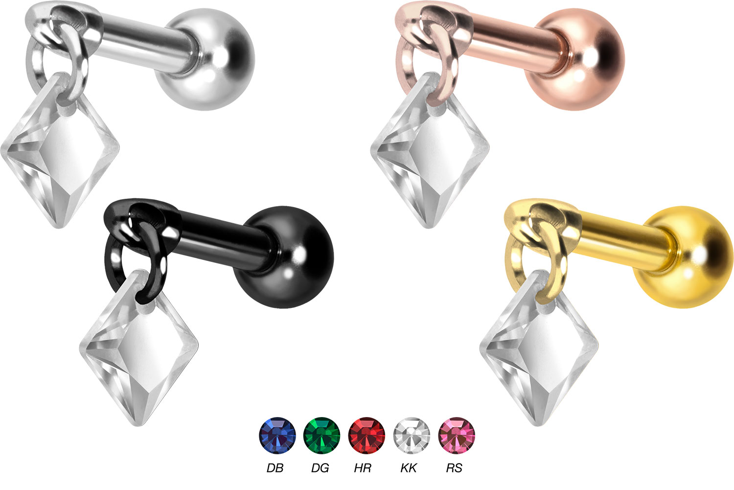 Titan Ohrpiercing mit Innengewinde KRISTALLQUADRAT