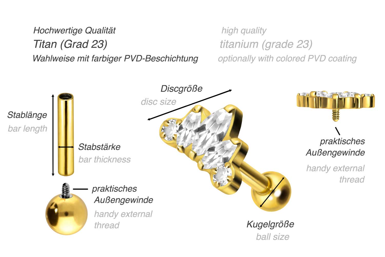 Dieses atemberaubend schöne Ohrpiercing ist aus hochwertigem Titan gefertigt, das