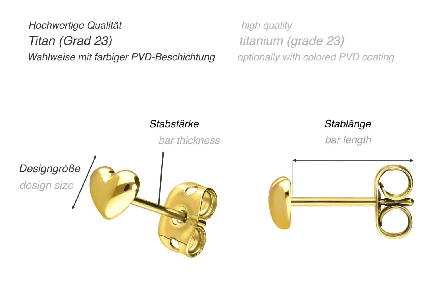 Beständigkeit auszeichnet. Ebenfalls zu seinen spezifischen Materialeigenschaften gehört Farbechtheit, die auch bei den Varianten mit PVD-Beschichtung gewährleistet wird. Die Herzen, die sich an den vorderen Enden der Stecker befinden, wirken aufgrund ihres schlichten Designs besonders ansprechend. Außerdem werden die Ohrstecker wie abgebildet paarweise geliefert.