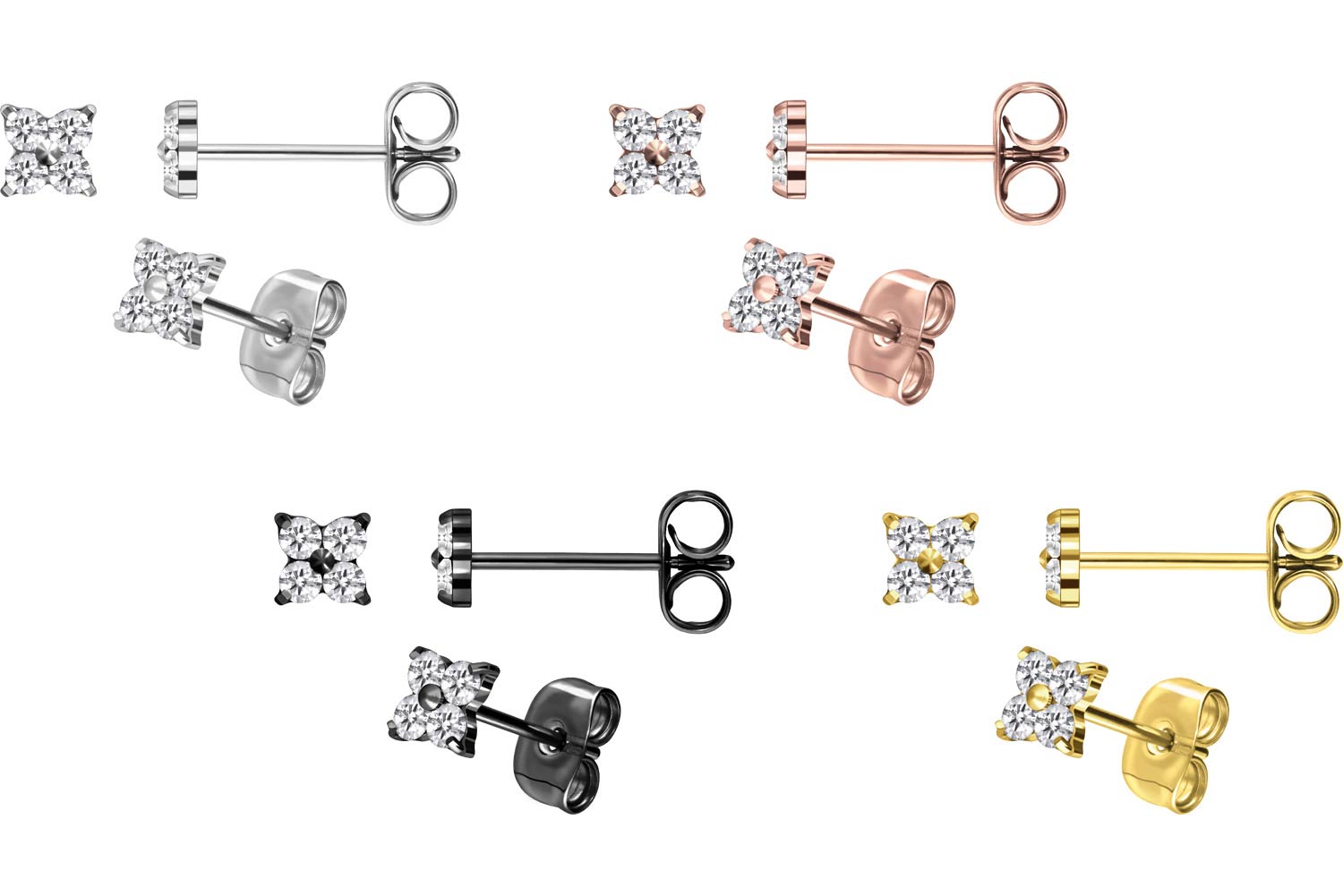 Diese zeitlos schönen Ohrstecker bestehen aus hochwertigem Titan, das sich unter anderem durch gute Hautverträglichkeit und hohe Beständigkeit auszeichnet. Ebenfalls zu seinen spezifischen Materialeigenschaften gehört Farbechtheit, die auch bei den Varianten mit PVD-Beschichtung gewährleistet wird. Beide Stecker sind mit je einer Kristallblume versehen und erstrahlen so in voller Pracht. Sie werden darüber hinaus, wie abgebildet, paarweise geliefert.