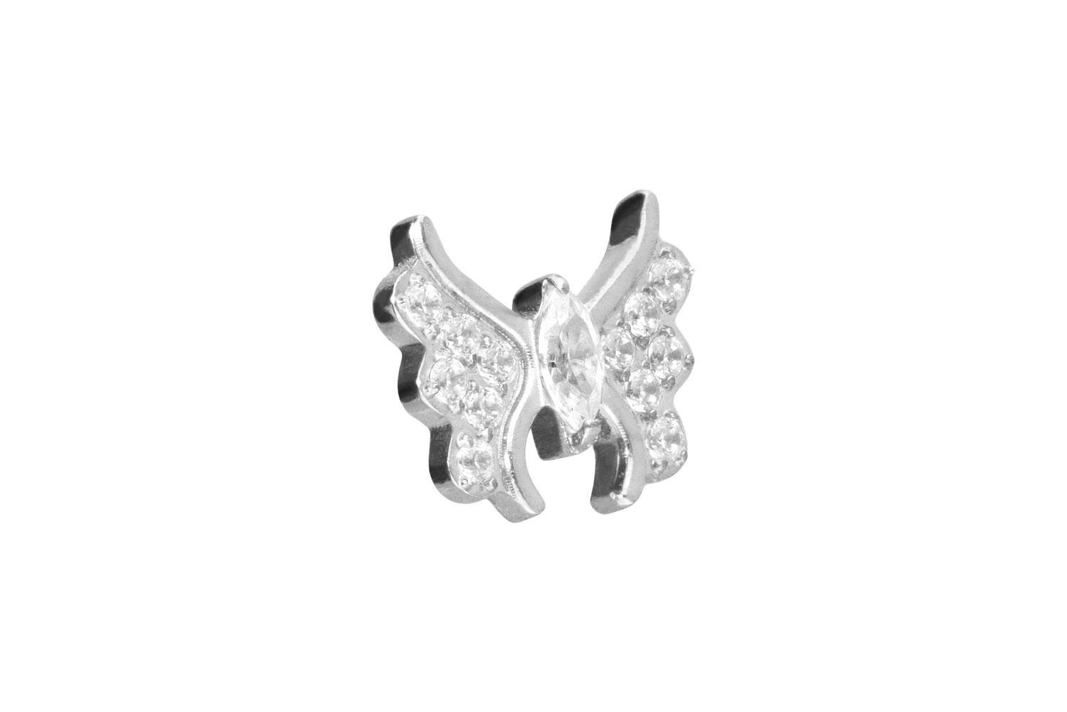 Dieser zeitlos schöne Schraubaufsatz in Form eines Kristallschmetterlings wurde speziell für unsere Innengewinde-Piercings entwickelt und besteht aus