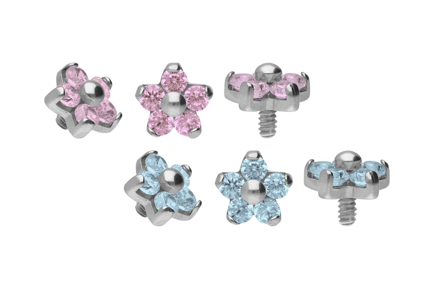 Dieser zeitlos schöne Schraubaufsatz in Form einer Blume mit funkelnden Kristallen wurde speziell für unsere Innengewinde-Piercings