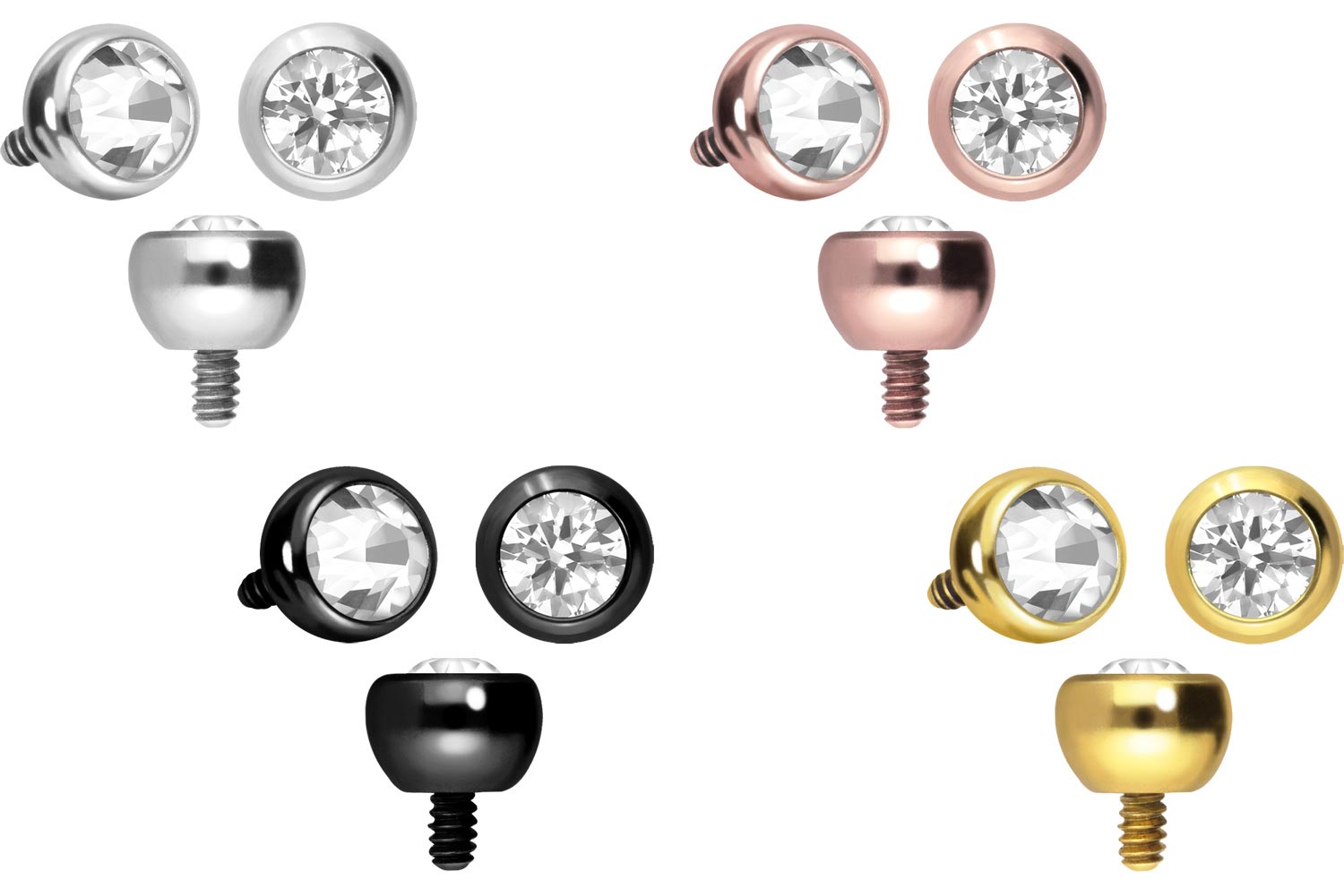 Dieser zeitlos schöne Schraubaufsatz in Form einer Kugel mit funkelndem Kristall wurde speziell für unsere Innengewinde-Piercings entwickelt und besteht aus hochwertigem Titan, das sich