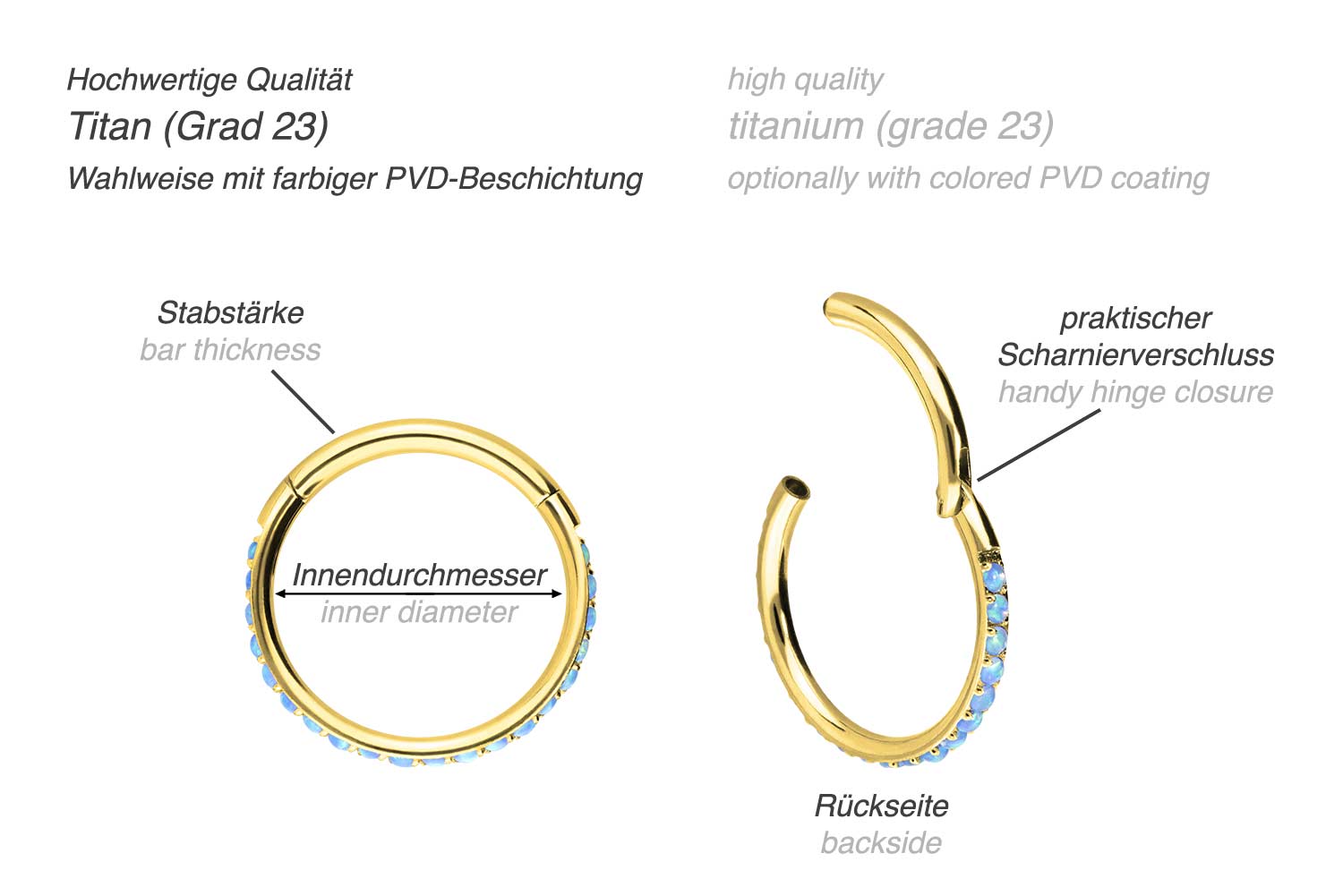 Material: synthetischer Opal / Titan (Grad 23)