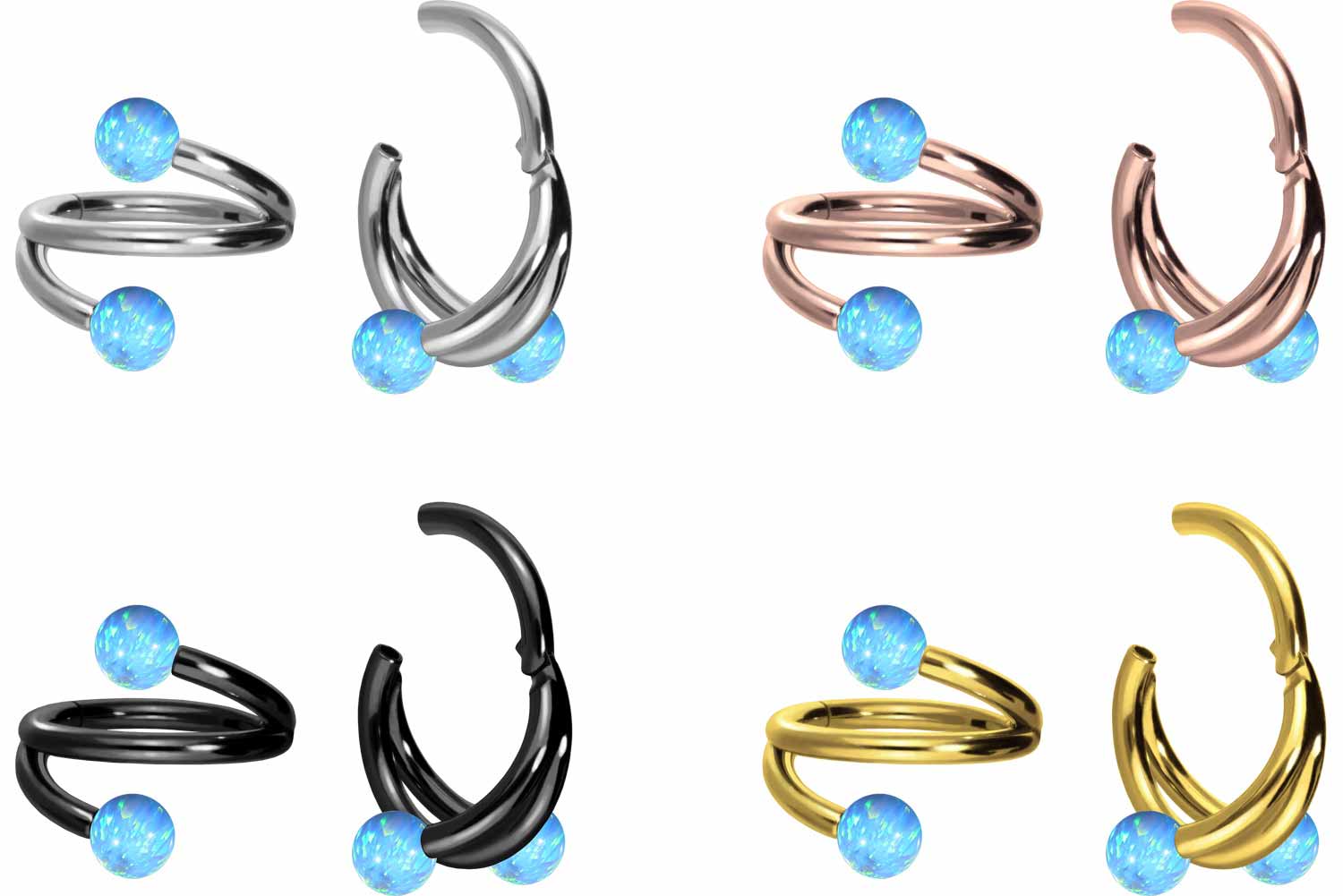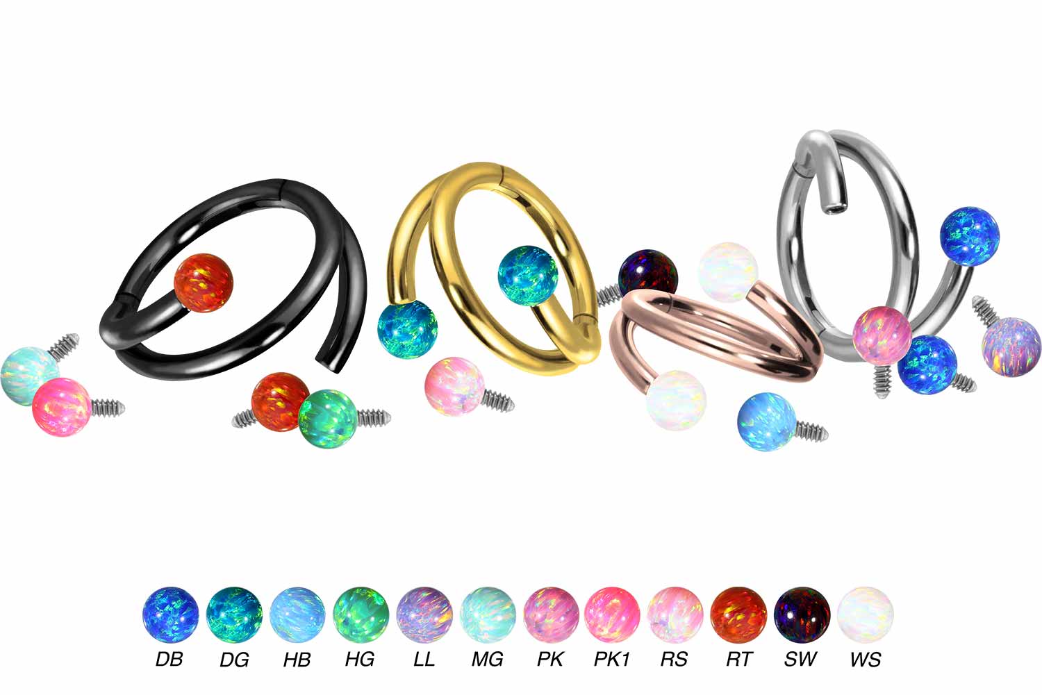 Titan Segmentring Clicker mit Innengewinde 3 RINGE + 2 SYNTHETISCHE OPALE