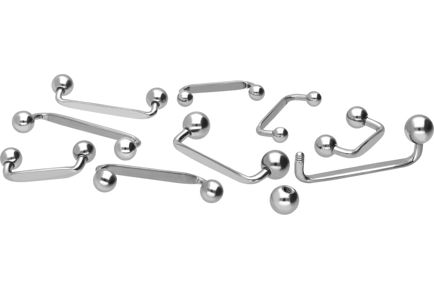Verwendung als Oberflächenpiercing. Es wird mit Kugeln geliefert,